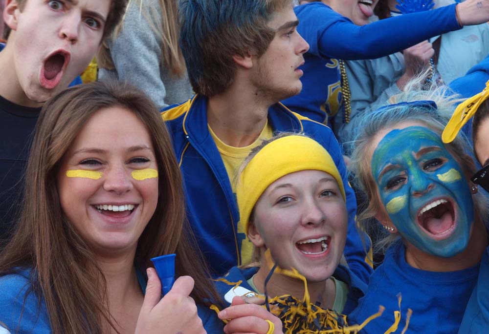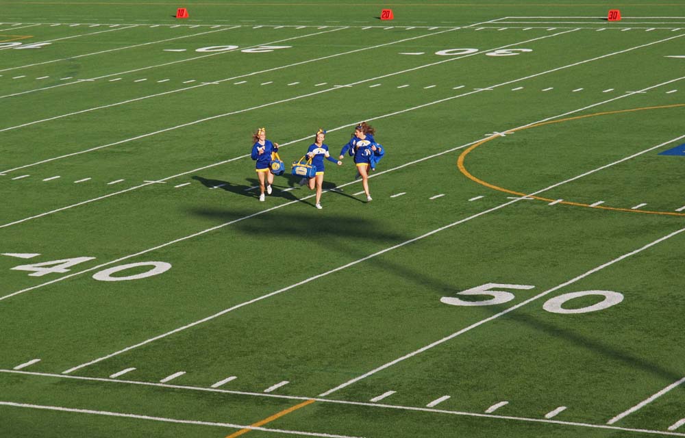 The Cary-Grove students come to games with small squirt bottles of baby powder. At the first kick-off -- at the exact moment that the kicker's foot hits the ball -- they all squirt a poof of white dust into the air. Believe me, it sounds more exciting than it is. Still, Sam Williams, a premier LFHS booster, discovered that fact and got baby powder squirt bottles for our students. So we had towels AND baby powder.