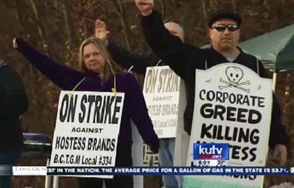The Bakers Union demanded more than Hostess could give. The union was told that if they didn't go back to work, and for a reasonable wage, the company would lose money every day it operated. The union responded, "Solidarity!"